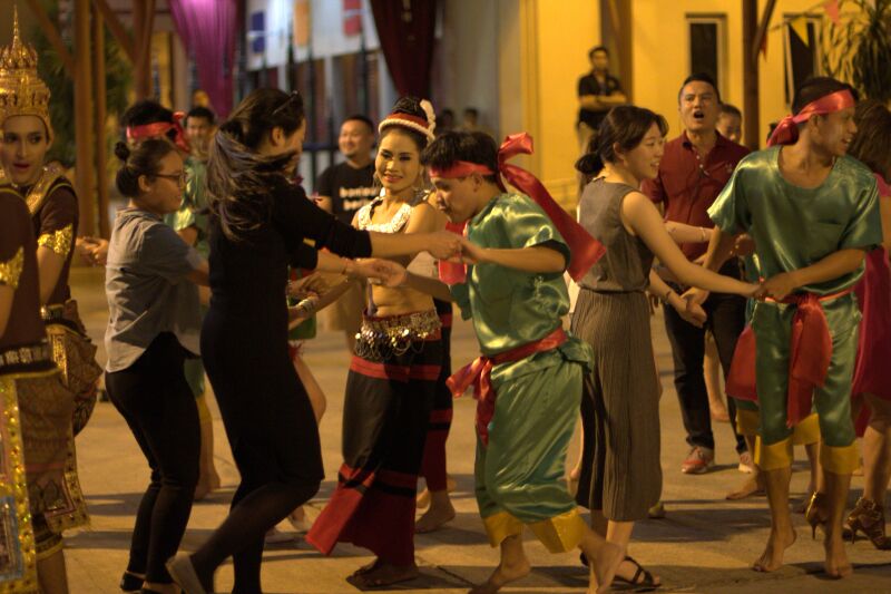 第一天早上七點(diǎn)鐘,大家搭乘旅游大巴前往寧波機(jī)場,一路上歡聲笑語,甚是融洽!中午12:30,航班準(zhǔn)時起飛,經(jīng)過長達(dá)四個半小時的飛行到達(dá)曼谷廊曼機(jī)場。一出機(jī)場,熱情的泰國妹子為我們戴上鮮花,并對我們說一句“薩瓦迪卡”,意為祝福平安。隨后當(dāng)?shù)氐膬晌粚?dǎo)游帶領(lǐng)我們分別上了兩輛大巴,經(jīng)過近一個小時的車程,我們到達(dá)第一站——暹羅夢幻劇場,在這里我們和大象合影,并欣賞了泰國獨(dú)特的民族風(fēng)情舞蹈。之后,進(jìn)入泰國規(guī)模最大的宏偉華麗劇院觀賞世界級的泰國藝術(shù)和文化遺產(chǎn)表演,深入地了解泰國四個朝代和各個部域民村的“泰國農(nóng)村”生活、傳統(tǒng)、文化以及藝術(shù)和手工藝。