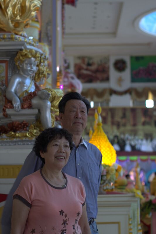 在泰國國王畫像前留影 周總夫婦