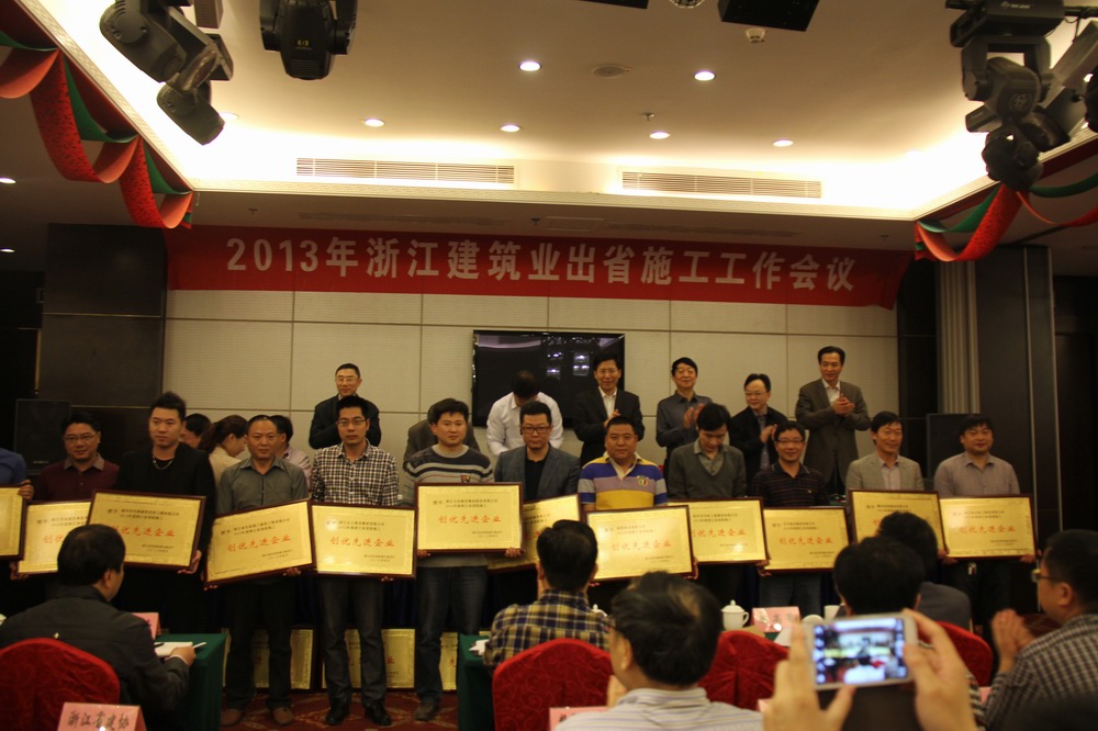 4月17日、18日,浙江省住房和城鄉(xiāng)建設(shè)廳和浙江省建筑業(yè)管理局在合肥市浙商瑞雅國(guó)際酒店召開了2013年浙江建筑業(yè)出省施工工作會(huì)議。會(huì)議由浙江省建筑業(yè)管理局駐安徽辦事處主持,參會(huì)人員有獲得2012年浙江省進(jìn)皖施工創(chuàng)優(yōu)先進(jìn)企業(yè)的企業(yè)負(fù)責(zé)人、進(jìn)皖施工先進(jìn)企業(yè)的企業(yè)負(fù)責(zé)人、進(jìn)皖施工創(chuàng)優(yōu)先進(jìn)個(gè)人、進(jìn)皖施工先進(jìn)個(gè)人,公司應(yīng)邀參加該會(huì)議。