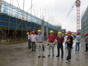 6月28日,為積極推進(jìn)“安全生產(chǎn)月”主題活動(dòng),創(chuàng)建安全標(biāo)準(zhǔn)化工地,促進(jìn)企業(yè)安全文化建設(shè) ,公司在東錢湖鎮(zhèn)中心小學(xué)遷建工程舉辦了建筑施工安全文明標(biāo)準(zhǔn)化現(xiàn)場(chǎng)觀摩會(huì),臺(tái)臨、永嘉、寧波、鎮(zhèn)海等地區(qū)在建項(xiàng)目部管理人員共計(jì)80余人參加,東錢湖鎮(zhèn)政府、建設(shè)局、業(yè)主代表、教育局、東錢湖中心小學(xué)相關(guān)領(lǐng)導(dǎo)蒞臨現(xiàn)場(chǎng),公司副總胡田宏、蔣國(guó)星、王國(guó)棉到會(huì)。此次觀摩會(huì)總體反響較好,讓觀摩的人員感觸較深的是項(xiàng)目部在安全生產(chǎn)方面的投入與管理。該工程占地面積較大,實(shí)際建筑面積小,無(wú)論是場(chǎng)地的硬化,還是安全設(shè)施的布置都做得極到位。在施工中項(xiàng)目部采用定型化的產(chǎn)品,合理布置各類安全提示牌和安全宣傳漫畫;設(shè)置門禁系統(tǒng),規(guī)范執(zhí)行實(shí)名制考勤,有效避免民工工資糾紛;在部份未硬化的場(chǎng)地上和沙、石等材料堆場(chǎng)采用安全網(wǎng)鋪蓋,并設(shè)置專用噴淋,有效地控制施工揚(yáng)塵;在生活區(qū)設(shè)置食堂、宿舍、職工活動(dòng)室、閱覽室、網(wǎng)吧、室外健身區(qū)、露天電影院等,保障民工的基本生活條件,同時(shí)也豐富了民工的業(yè)余生活?;顒?dòng)相關(guān)人員在對(duì)施工現(xiàn)場(chǎng)進(jìn)行實(shí)地參觀體驗(yàn)后,在現(xiàn)場(chǎng)會(huì)議室召開(kāi)了交流會(huì),工程項(xiàng)目負(fù)責(zé)人張經(jīng)理就項(xiàng)目目標(biāo)制定、專業(yè)團(tuán)隊(duì)建立的重要性以及他在施工過(guò)程中的幾點(diǎn)感觸與大家作了生動(dòng)的交流。