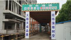 2.施工現(xiàn)場主要通道口安全防護(hù)長廊,主樓底層施工道路設(shè)置定型化安全防護(hù)棚。